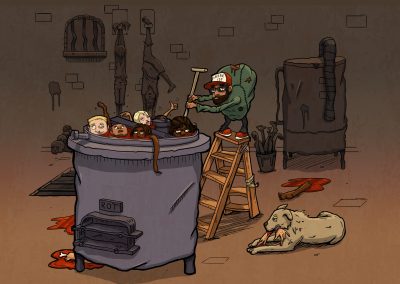 My illustration process begins with creating a series of thumbnail sketches to explore and refine the composition. Once a concept is selected, I develop it further, adding details and clarity. I then digitally ink and color the final artwork using Photoshop or Illustrator, ensuring a professional and polished result.